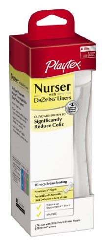 Used by moms for generations, this unique bottle system is clinically shown to mimic breastfeeding which makes it perfect for breastfeeding moms who also want to bottle feed. It's easy and convenient liners ensure a fresh, pre-sterilized bottle at every feeding. That helps mom to relax and know her baby is taken care of. You will receive one 8 ounce Nurser Bottle.Ideal for breastfeeding moms, the Playtex Drop-Ins Nurser features a unique bottle system that eases babies into switching from breast to bottle. Soft silicone nipples make drinking easy on the infant's gums and lips, while a wide base promotes the latch-on technique. Babies can enjoy looking at the colorful decorations on the sides of the holder, while parents can enjoy spending m